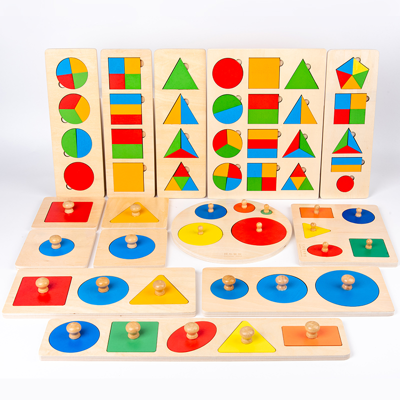 Montessori early education shape cognitive puzzle hand grasping inlaid board equal parts board children's educational development wooden toys