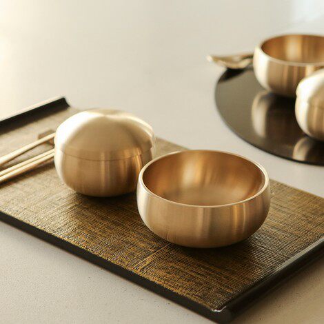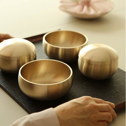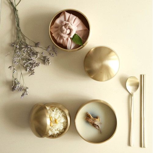 Korean direct mail eats and broadcasts the same hand - made pure brass Korean high - end tableware chicken soup with 2 rice bowl