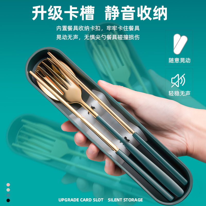 Chopsticks Spoon Set Stainless Steel Net Red Three-piece Set Portable Tableware Fork Single Pack Student Takeaway Storage Box
