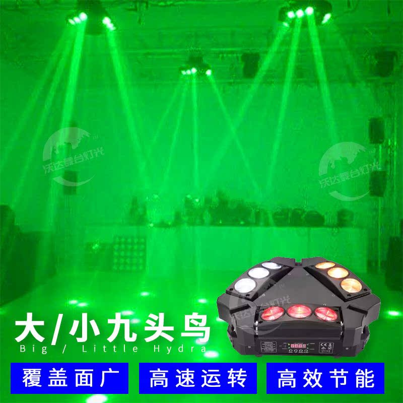 LED Nine-Headed Bird Beam Light Shaking Head Light Bar Rotating Laser Bungee Light Stage Spider Light KTV Flash Light Explosion