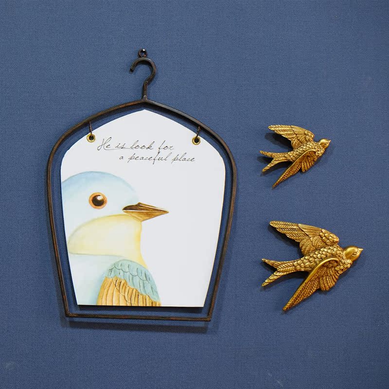 American Fields Garden Countryside Retro Making Old Iron Art Bird Cage Wall Decoration Small Bird Decoration Hook Bird Cage Wall-mounted Wall Decoration