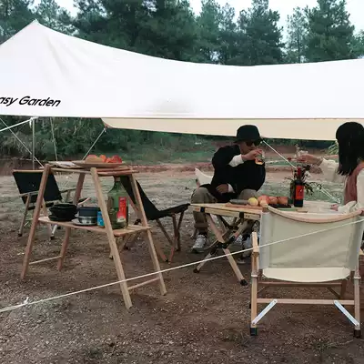 Fantasy Garden dream Garden double solid wood rack outdoor camping barbecue picnic storage rack