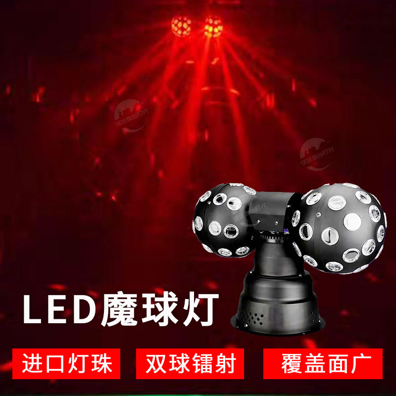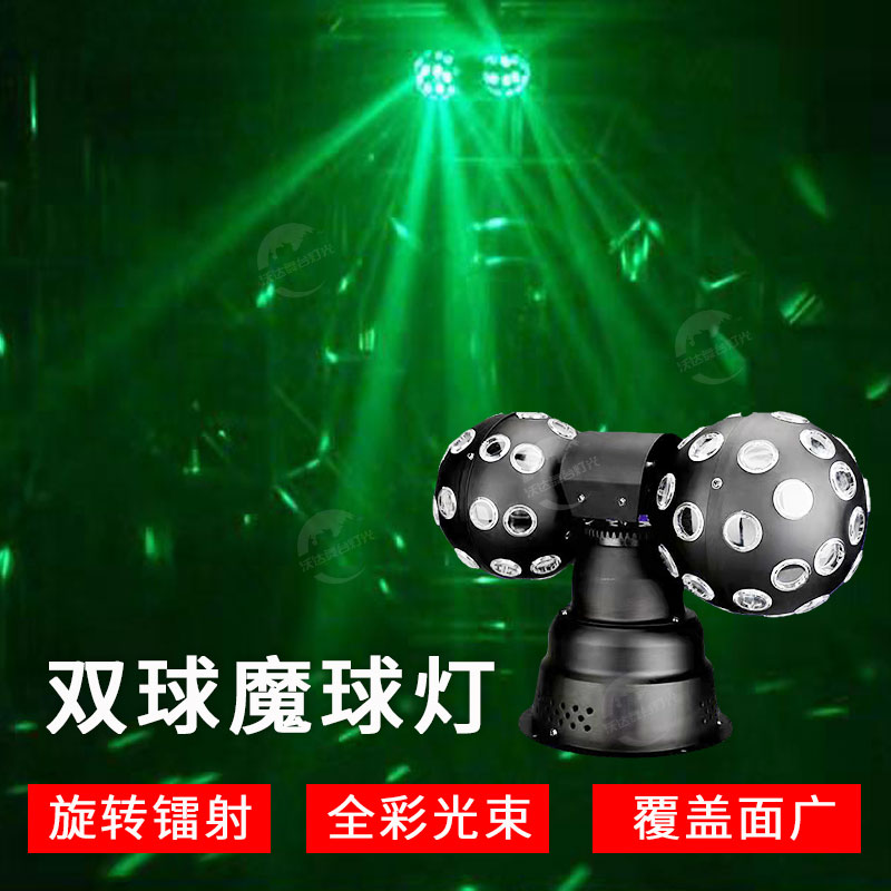 LED Double Rolling Ball Magic Ball Light Room Swivel Seven Colored Lights Dance Hall Laser Trampoline Lights Home KTV Flash Sound