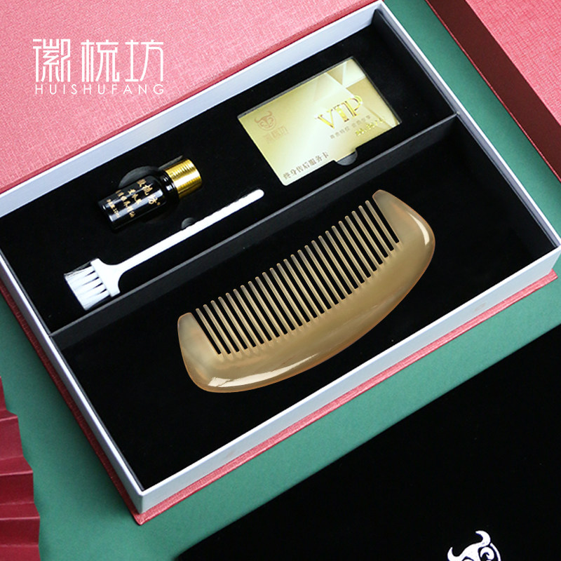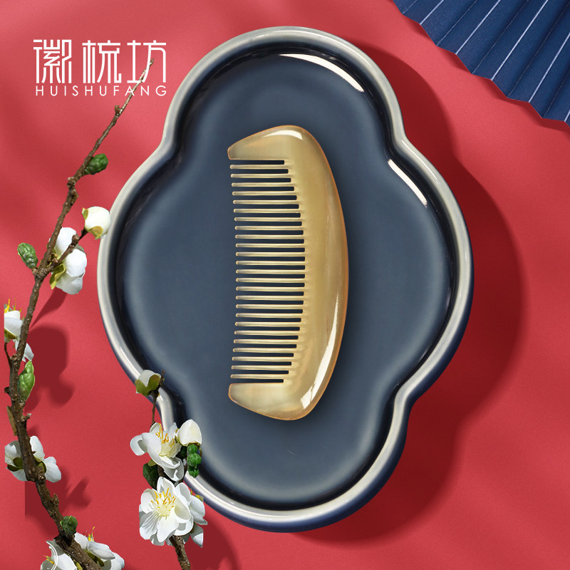 Hui comb square oversized thickened sheep horn comb horn comb ladies special long hair yak horn comb natural wood