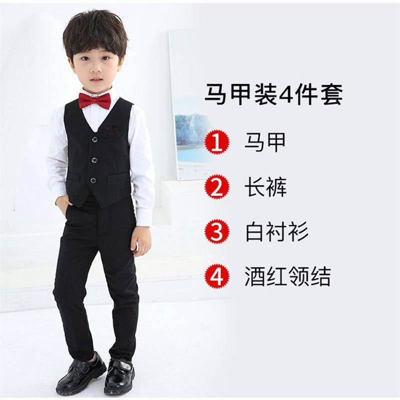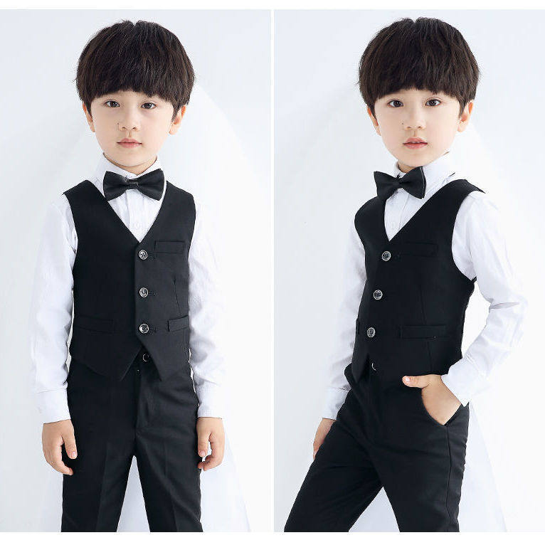 White long sleeves, black trousers, black bow tie, baby bag, white long sleeves, black trousers, wine red bow tie, baby bag, black vest, white long sleeves, black trousers, wine red bow tie, black vest, white long sleeves, black trousers, red