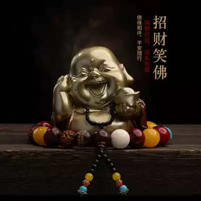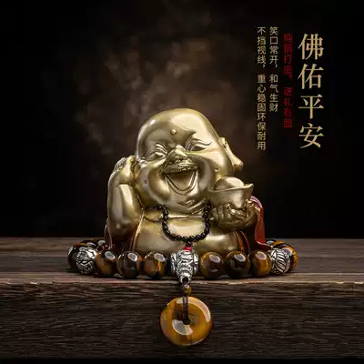 Pure copper Maitreya Laughing Buddha high-end car center console ornaments, car decorations, atmospheric safety, creative men and women