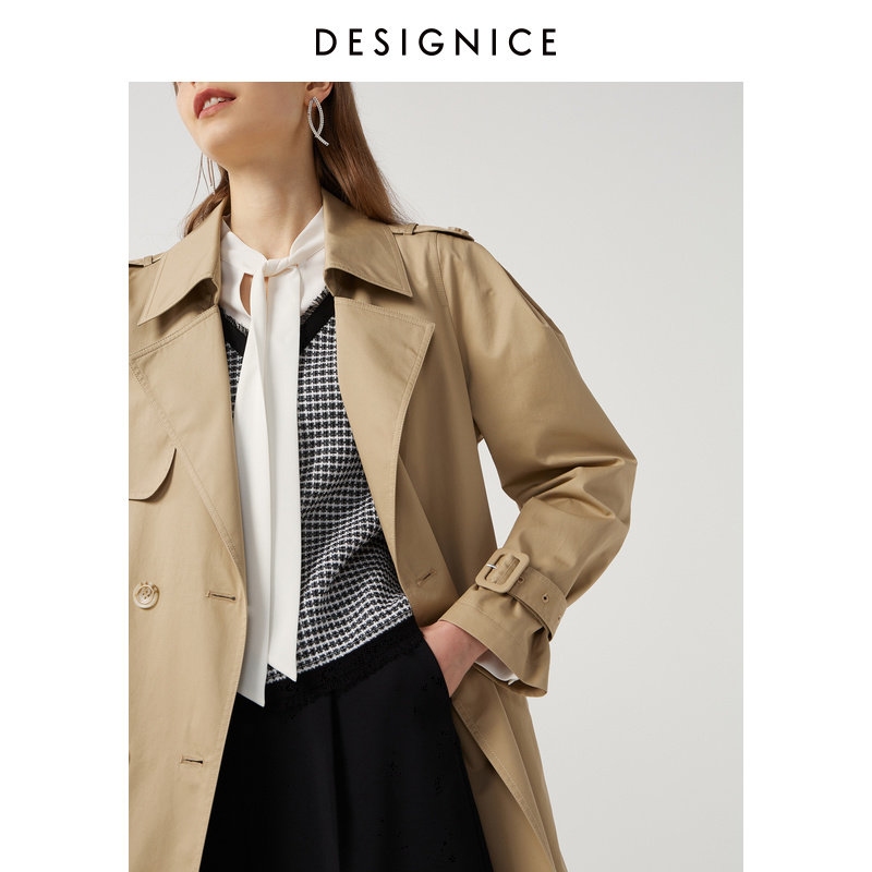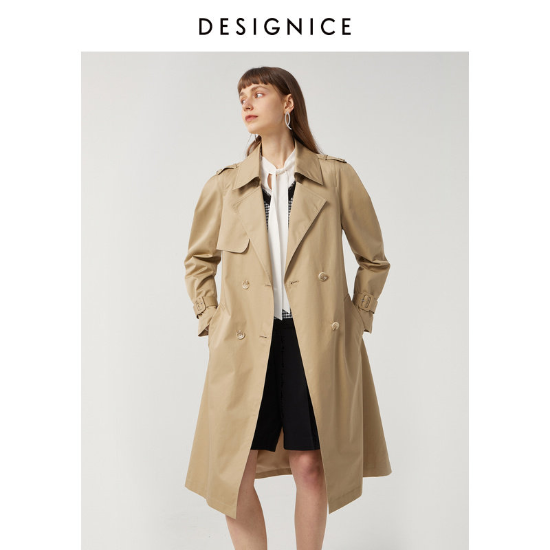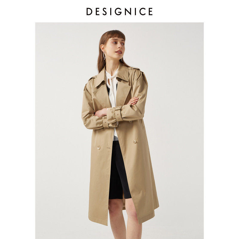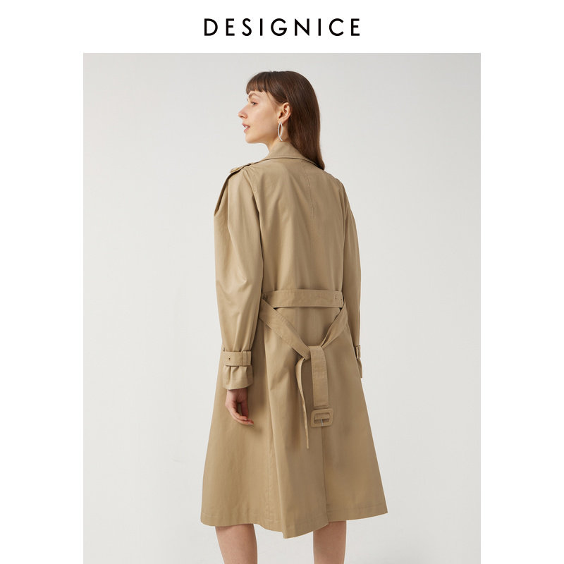 Disai Nice 2021 Spring new Bubble Sleeves Slim commuter Long version full cotton temperamental Pale Wood Color Windsuit Lady