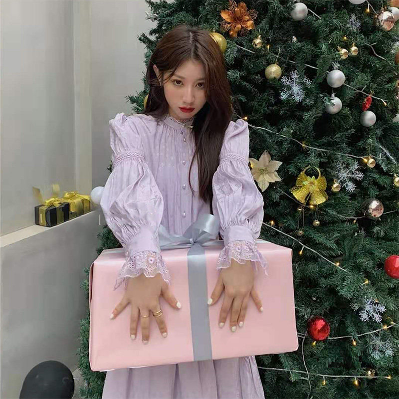 Xiaoxiangfeng puff sleeves purple two-piece dress women's spring 2022 new French ladies temperament suit skirt