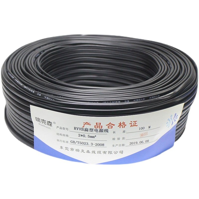 Flat line power cord RVVB2 core 0 5 0 75 1 square household soft sheathed wire aluminum core monitoring charging cable