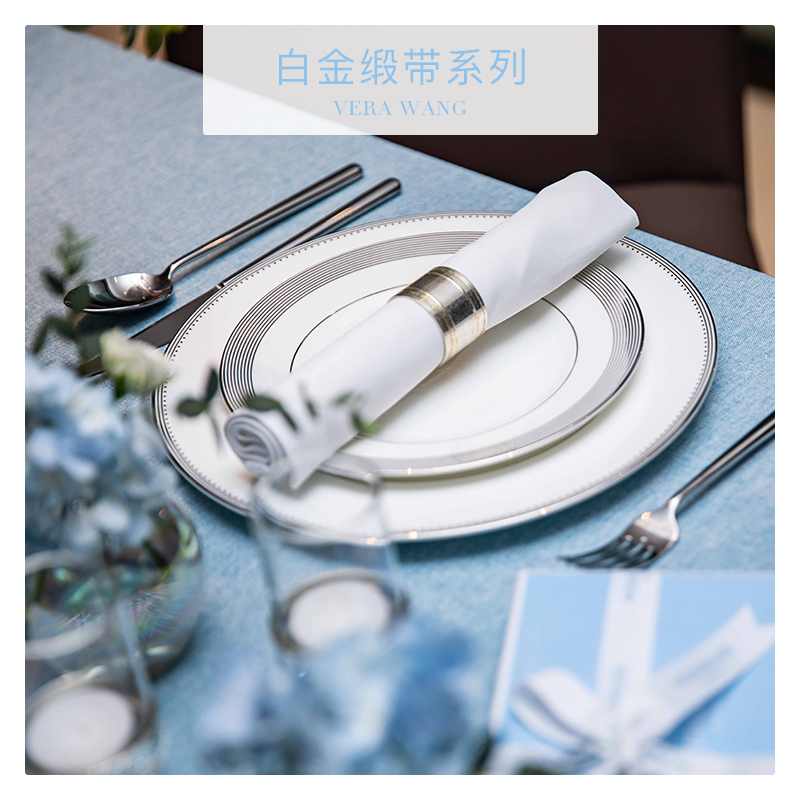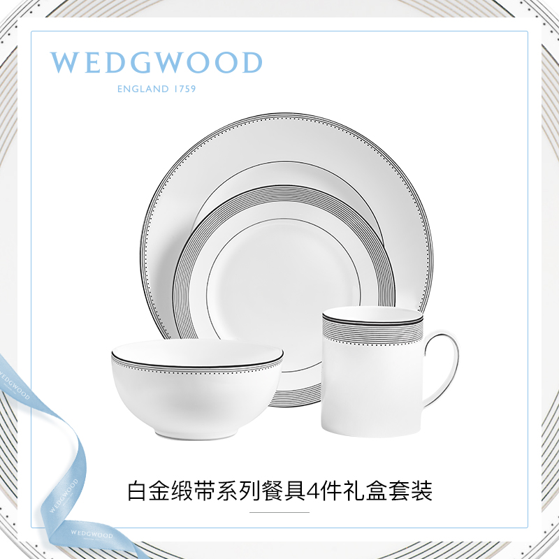 Scheduled WEDGWOOOD Wang Weiwei Vera Wang platinum satin with four pieces of Bone Porcelain Tableware Suit Dinner Plate Bowl