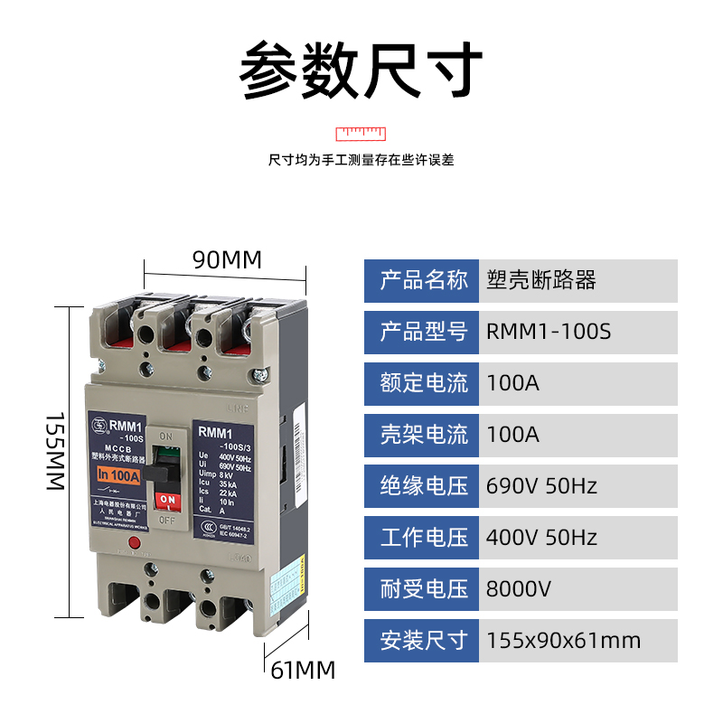 Shanghai People's Electric RMM1-100S400S Shanglian brand plastic case circuit breaker 3P4P air switch 32A630A