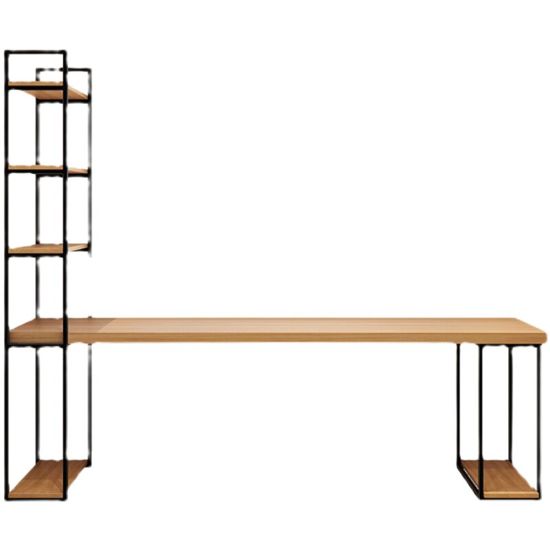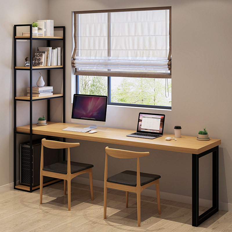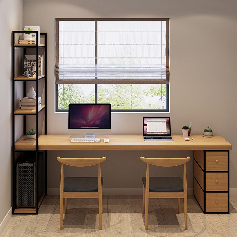 Soliwo Double Computer Table with Bookshelves Household Long Round Desk Desk Desk with Bookshelves