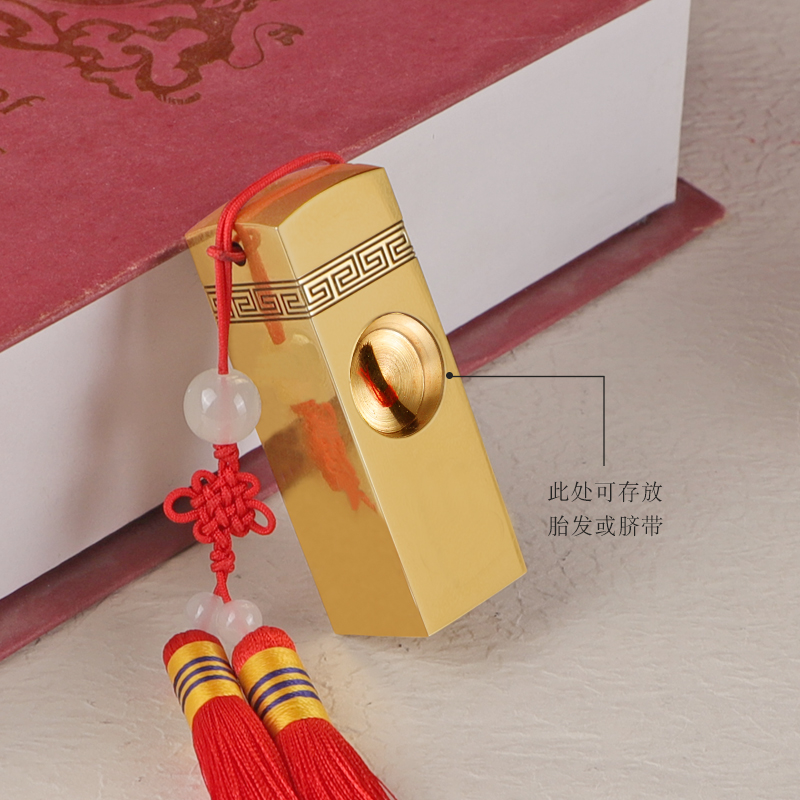 Brass conformal hole fetal hair badge Gift box tassel printing clay