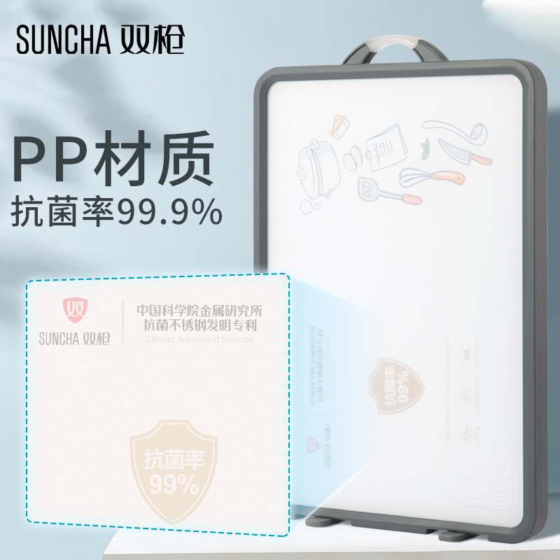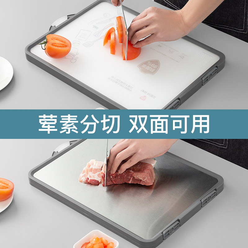Double gun 304 stainless steel cutting board antibacterial anti-mildew home kitchen cutting board thickened case board plastic double-sided cutting board