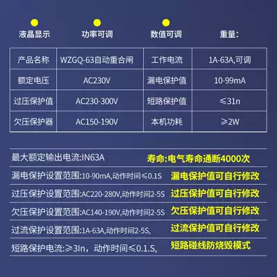 Intelligent automatic reclosing leakage protector switch lightning protection and anti-touch self-recovery over undervoltage single-phase 220V circuit breaker