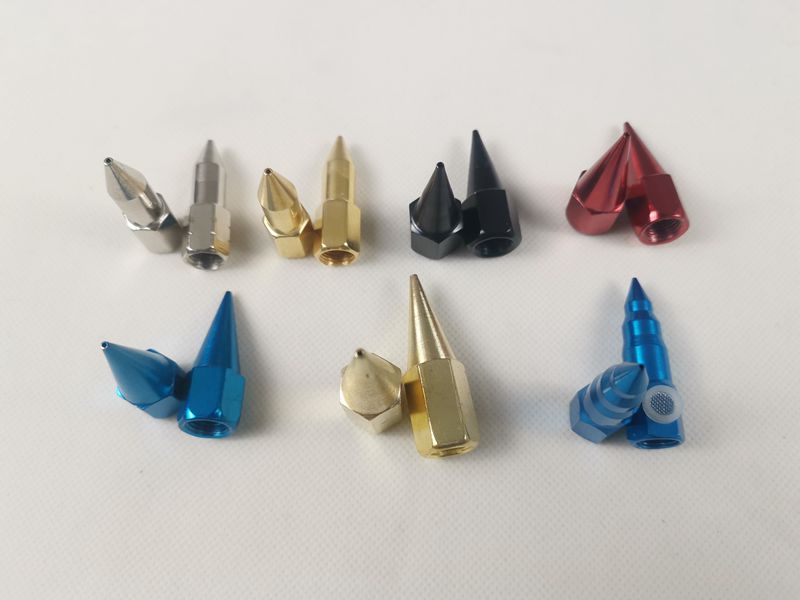 Flat-nosed pliers, one nickel-plated common tip, 10 blue tips with filter, 5 blue pinhole pins, 5 yellow pinhole pins, 5 black pinhole pins, 5 red pins