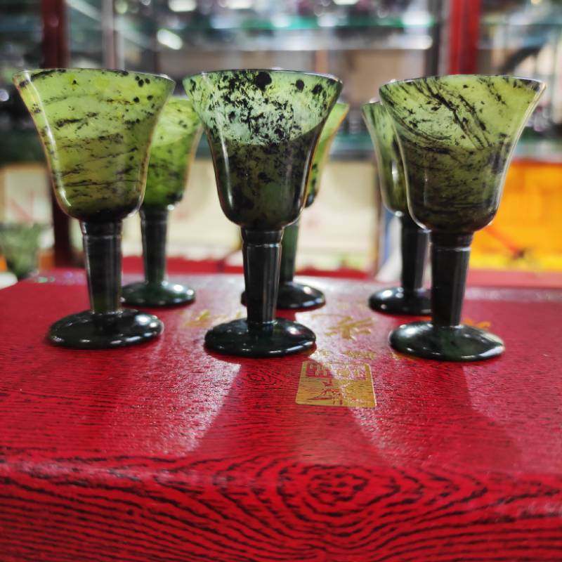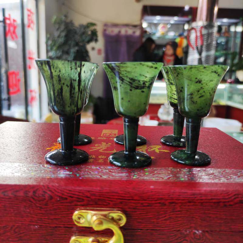 Jiuquan other luminous cup specialties Qilian Mo Yu wushan Mandarin duck jade wine cup tea cup snake pattern jade manufacturers direct sales