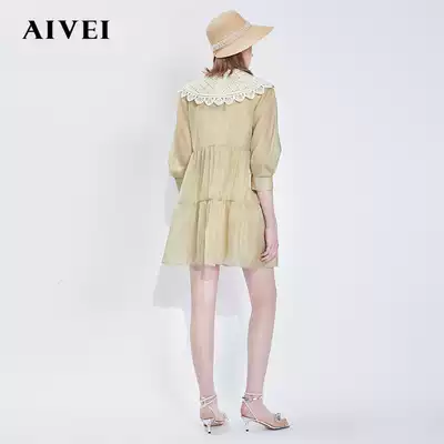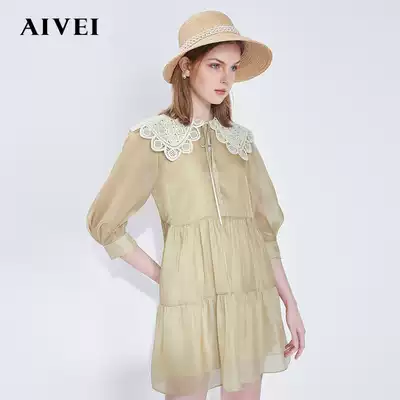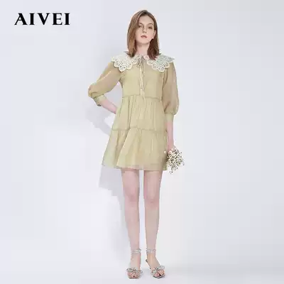 AIVEI Xinhe Ivy 2021 spring new embroidered doll collar high waist forest ins dress N0160134