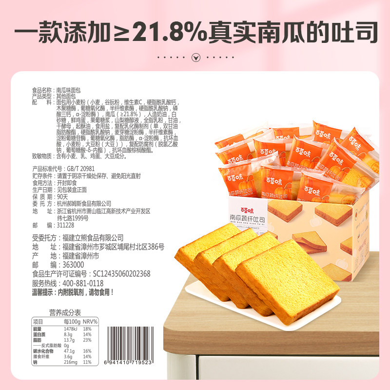 Pumpkin Vegetable Fiber Toast 500g (14 9 Yuan each) Pumpkin Vegetable Fiber Toast 500gx2