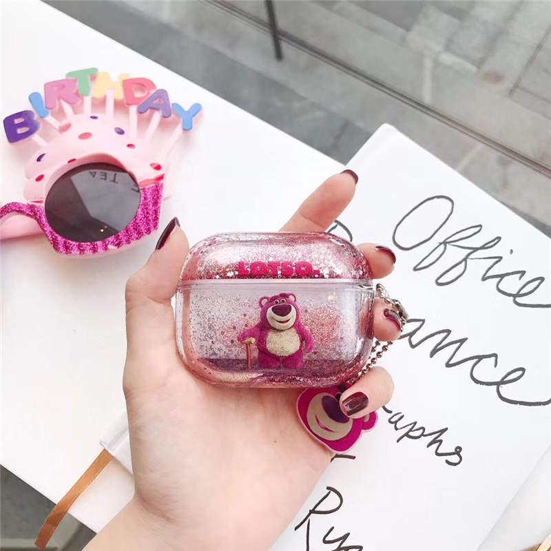 Cute quicksand strawberry bear suitable for Airpods2 protective sleeve transparent Pro3 generation Apple Bluetooth headset hard shell tide
