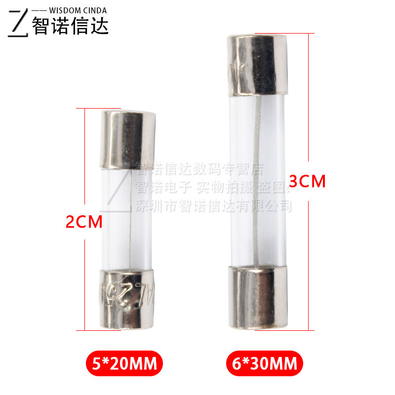 Glass fuse tube 5*20 1-30A 250V car cigarette lighter charger driving recorder 6x30