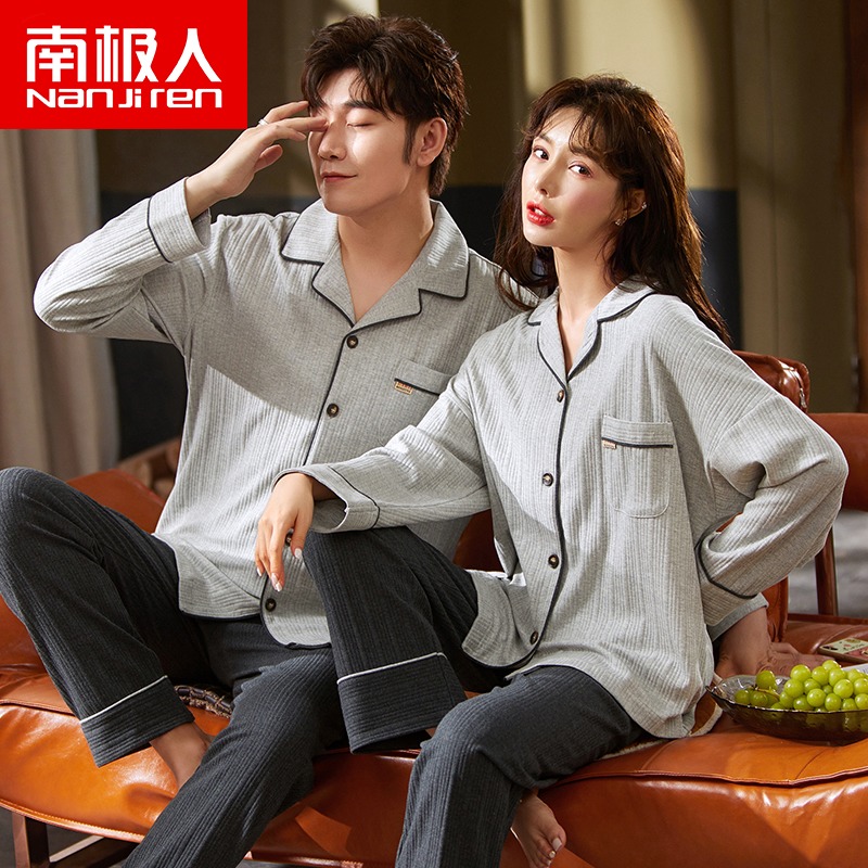 Antarctic couple pajamas spring and autumn 2021 new cute long-sleeved cartoon men and women summer home service suit
