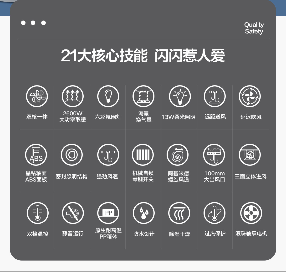 Top integrated ceiling dual-core crystal diamond super high-power multi-function three-dimensional circulation air-conditioning type colorful bath bully