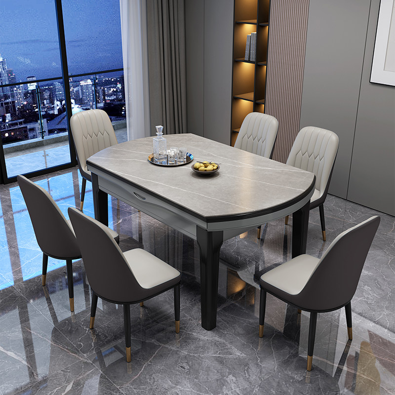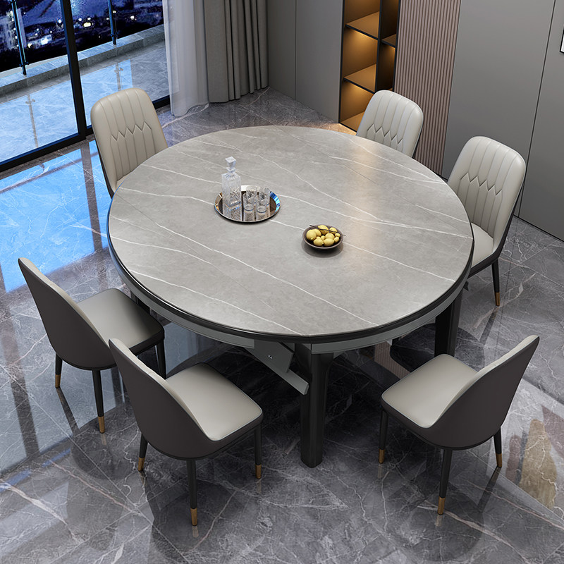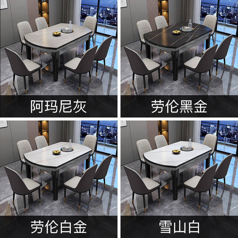 Light luxury rock plate dining table and chair combination foldable telescopic modern simple household small household variable round dining table