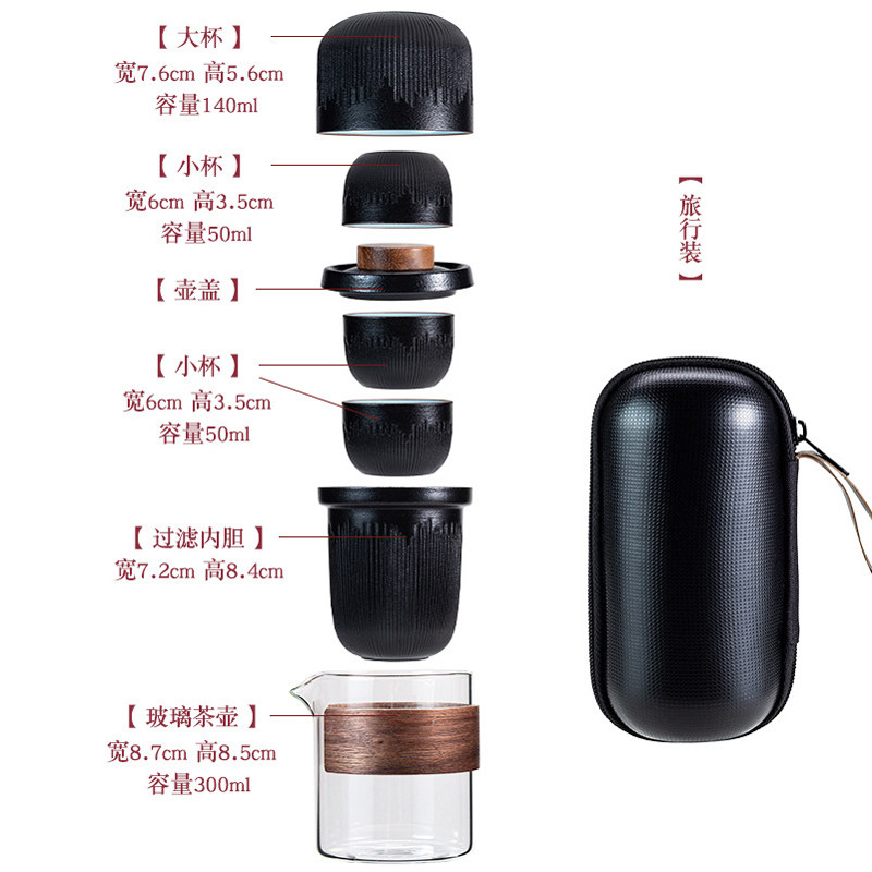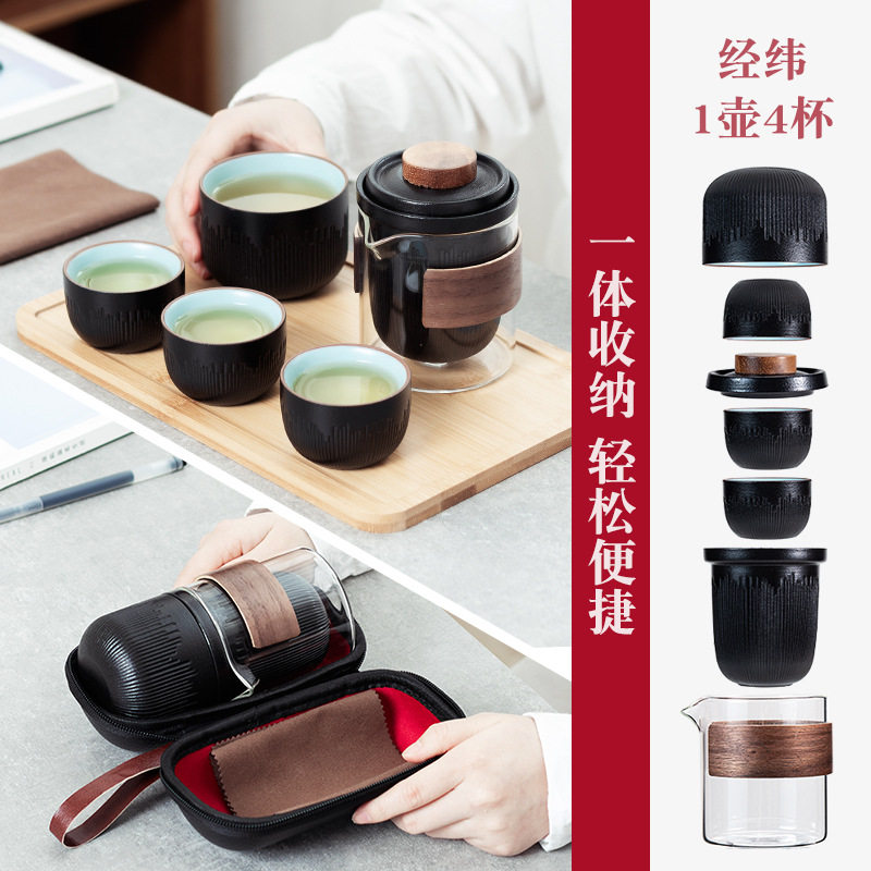 Travel tea set set one pot four cups outdoor portable teapot creative anti-scalding glass quick cup portable bag