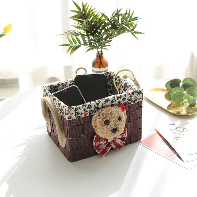 Simple straw tabletop storage box cosmetics remote control snacks miscellaneous storage box living room tidying box basket sale