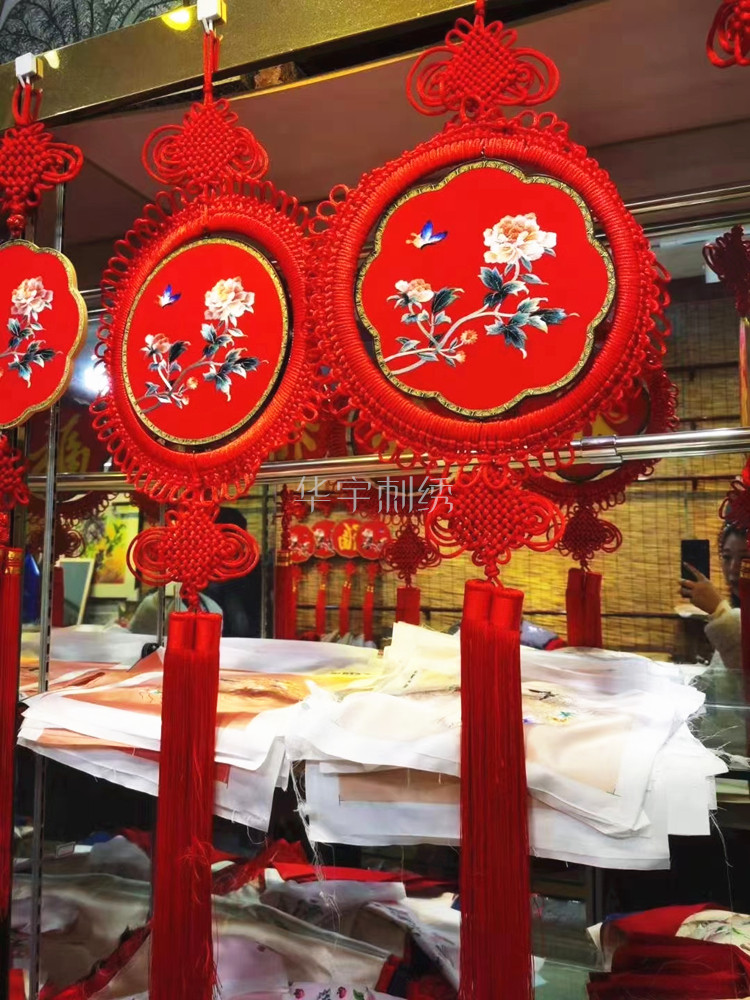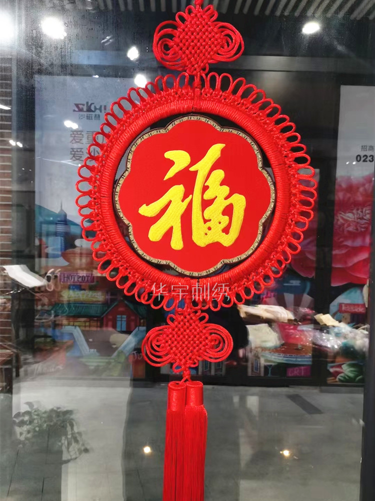 Su embroidery festive entrance pendant double-sided embroidery Chinese knot Home New Year Blessing pendant decorative Mahogany wall painting