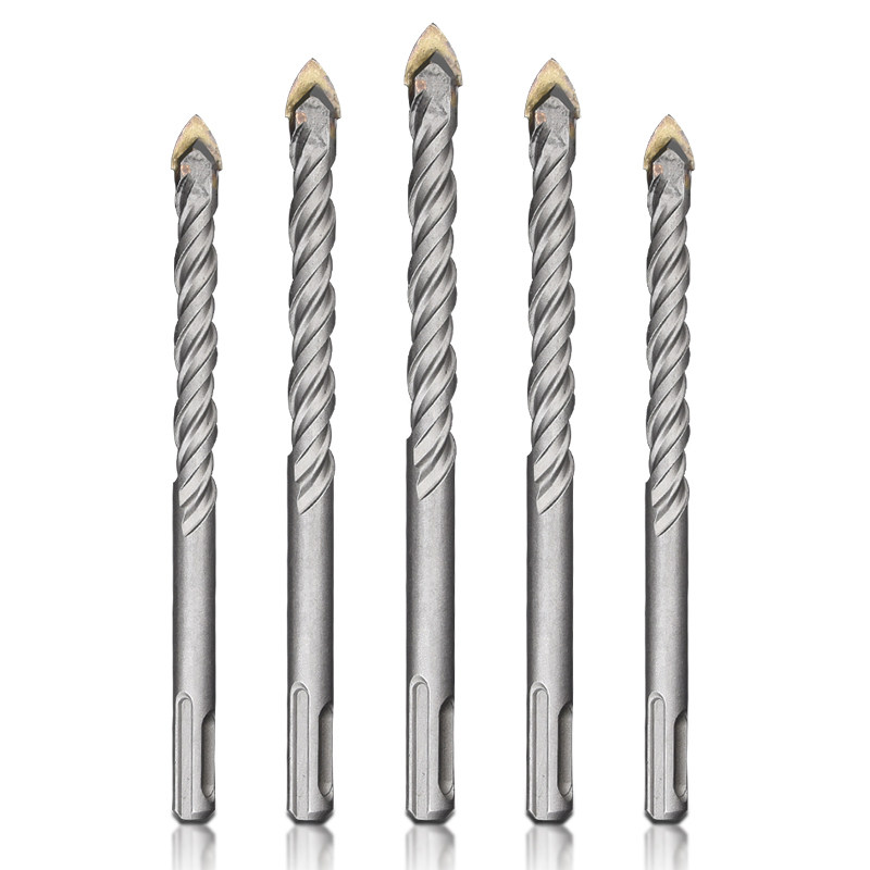 Multifunctional tile special electric hammer drill percussion drilling two-pit two-groove triangular drill with round shank concrete driller twist