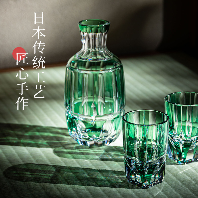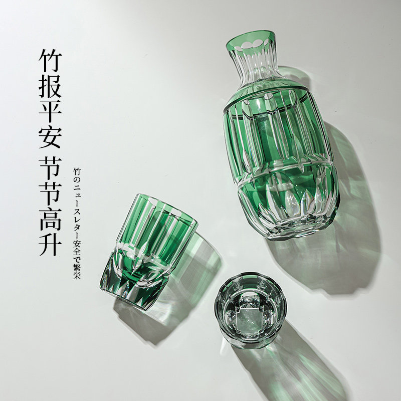 Japan KAGAMI Edo Kiriko Bamboo Dining Wine Set Set Wine Dispenser Sake Glass Crystal Glass