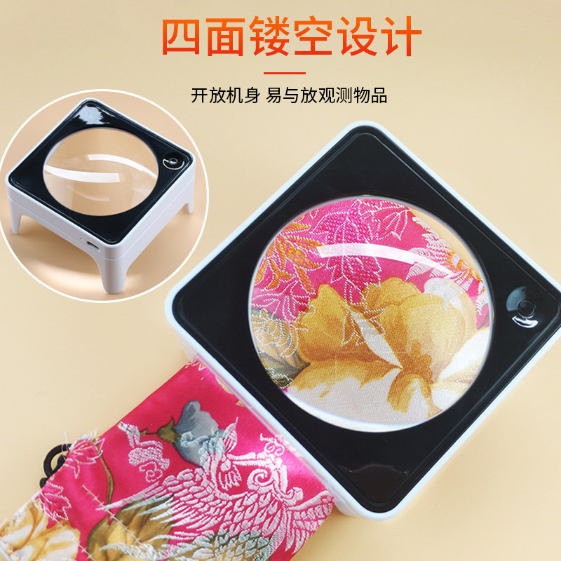 ShangOao magnifying mirror 5 times desktop high double with LED lamp charging lithium life reading book jewelry appraisal circuit board overhaul crafts viewing instructions industrial drawing square hollow