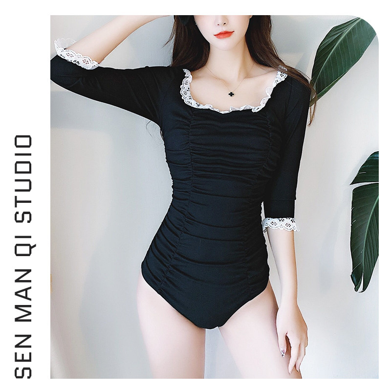 New hot spring lady swimsuit with a thin waist five-sleeve shade fold behind the back of lace edge sexy