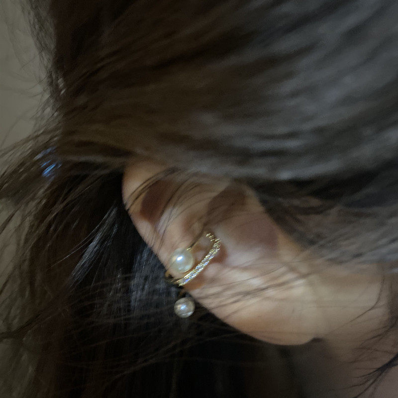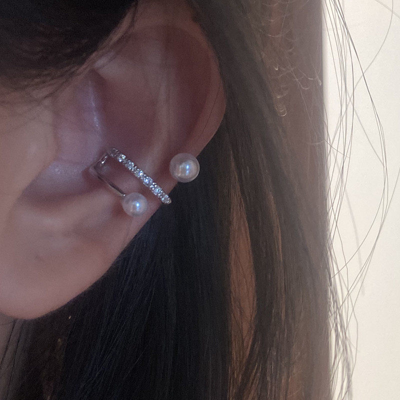 Lou Haha] multi-layer pearl zircon ear bone clip without ear hole Korea Dongdaemun temperament high-end simple ear clip