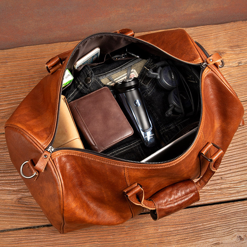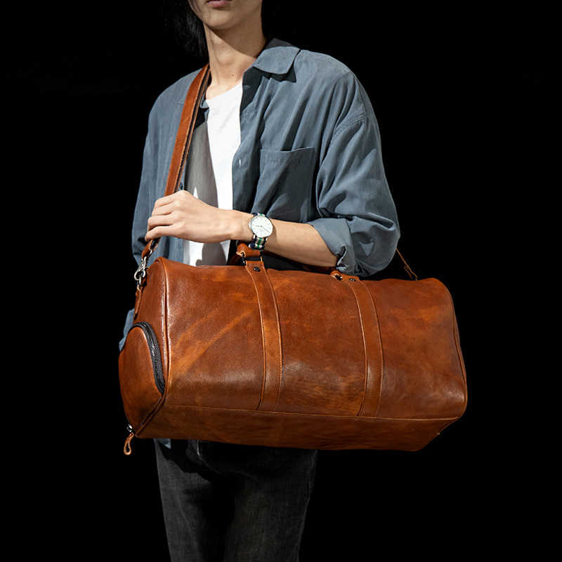 Slow time bald skinned Tannic Bull Leather Travel Bag Large Capacity Genuine Leather Luggage Bag Men Bag For Business Hand Bag Computer Bag
