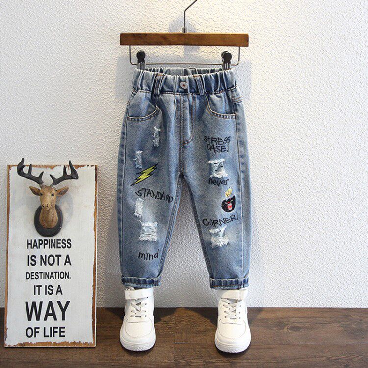 Ai KE-Ripped Jeans with Printed Holes (Light Blue) Ai KE-Ripped Jeans with Green Letters (Blue) Ai KE-Two-Color Back Pocket Smiley Jeans (Blue) Ai KE-Two-Color