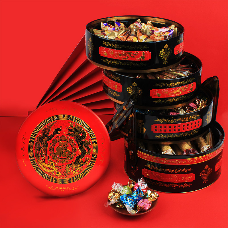 New Year wholesale Macao golden language plate, dragon and phoenix chengxiang biscuit gift box 808g happy candy cake banquet wedding celebration group purchase