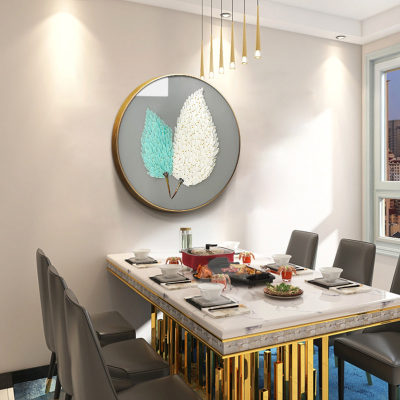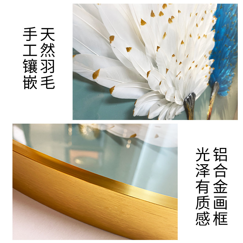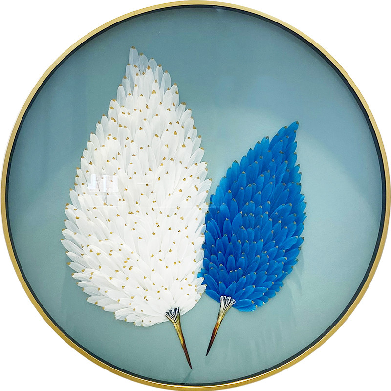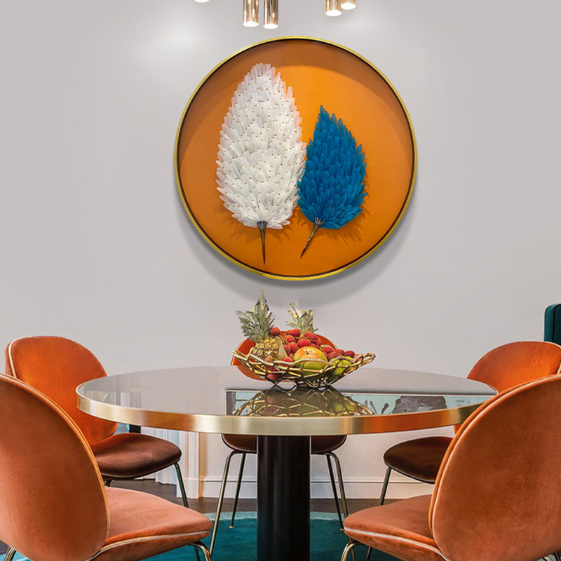 Dining room decorative painting light luxury wind round light luxury three-dimensional feather physical painting living room corridor aisle background mural hanging