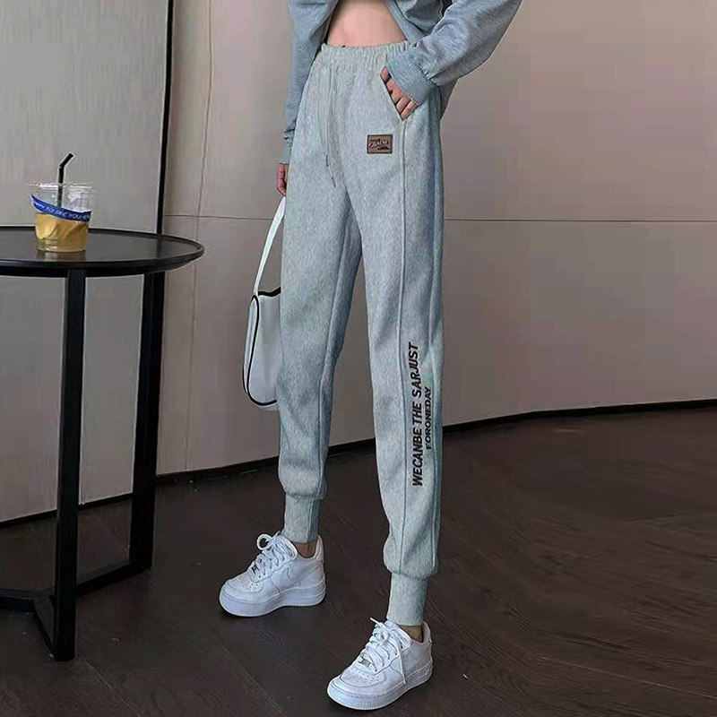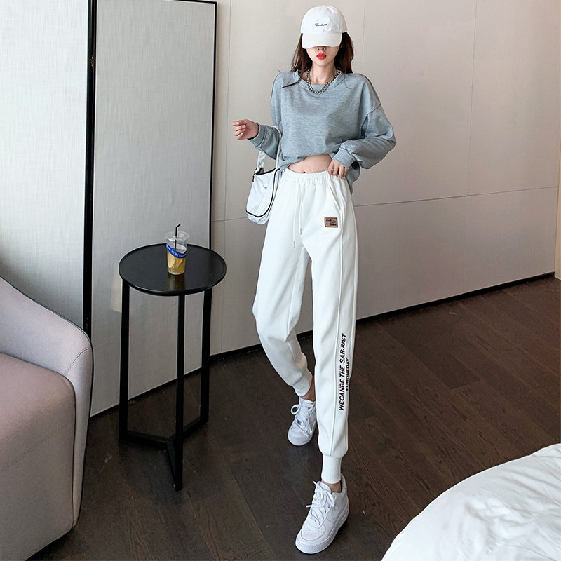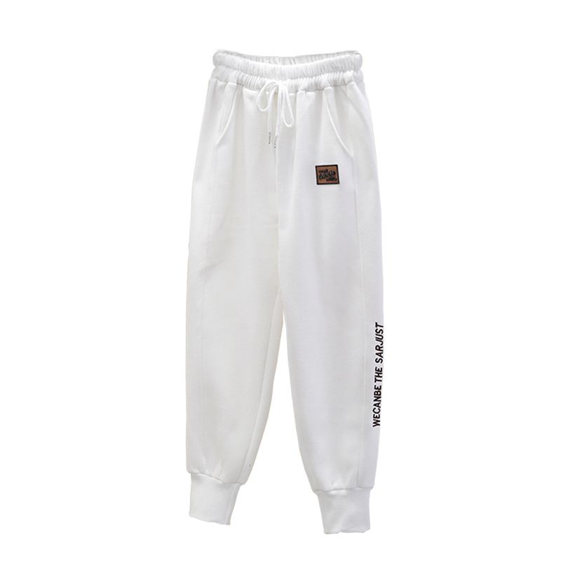 White trousers women's autumn and winter new loose plus velvet thick casual harem trousers outer wear sports pants