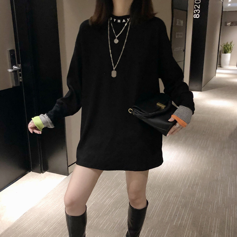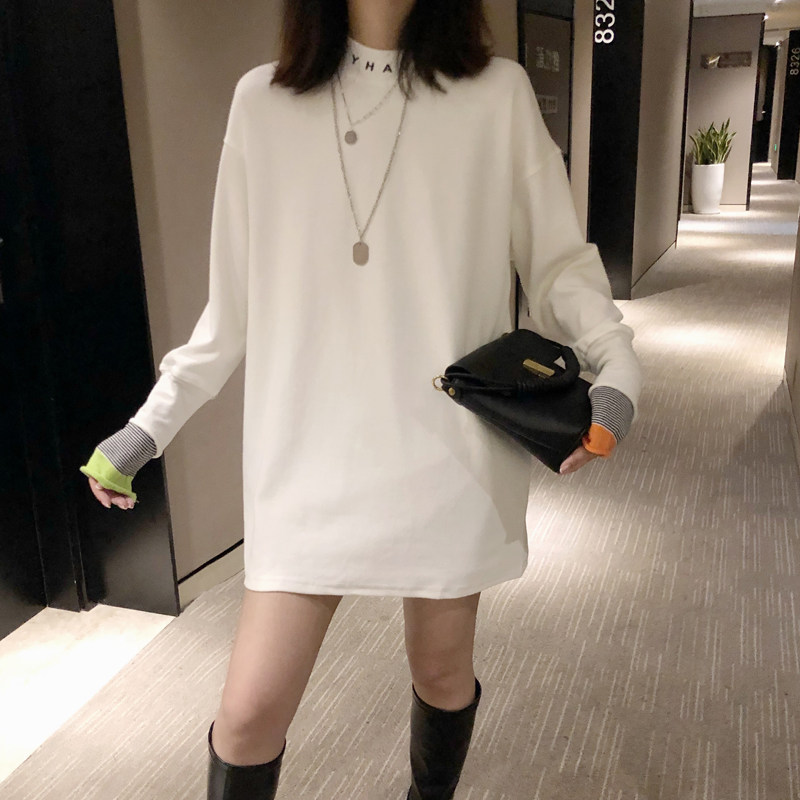 2022 spring and autumn new white bottoming shirt women's loose all-match mid-length version cotton long-sleeved T-shirt top trendy