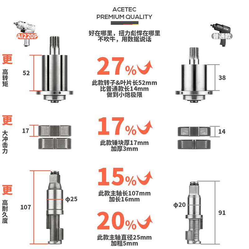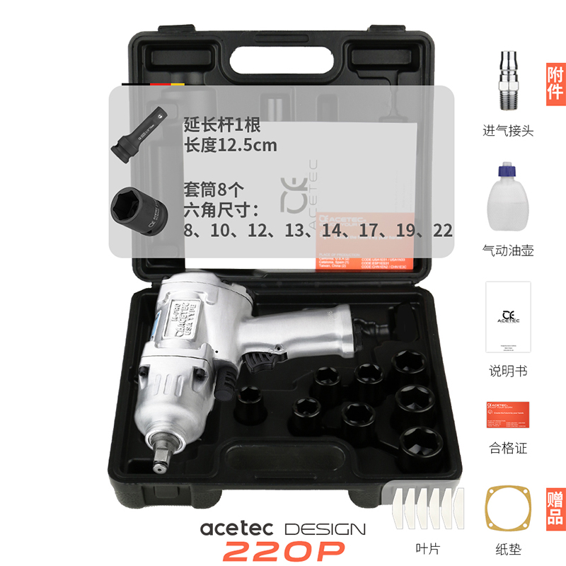 ACETEC Astek 1 2 large torque pneumatic wrench 220P small pneumatic wrench 52 SUPER LONG BLADE THICKENED HAMMER BLOCK