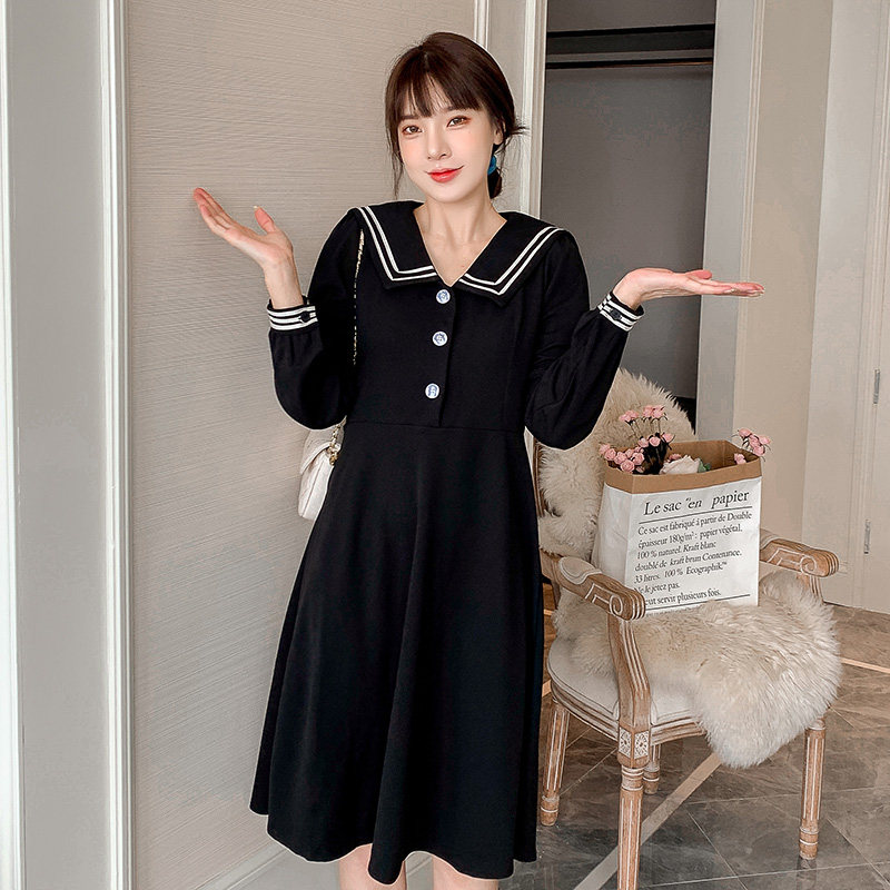 Pregnant women's spring dress mid-length version of fashion Hepburn style Western style age-reducing tide mother lapel small black dress temperament is thin