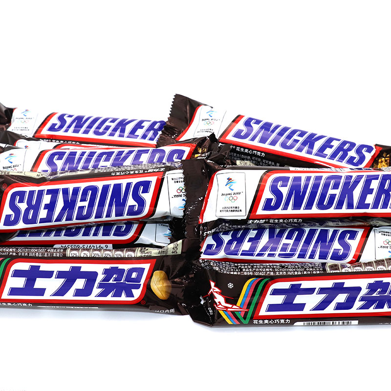 Snickers peanut sandwich chocolate snack candy 51g open bag ready-to-eat snack food breakfast before portable