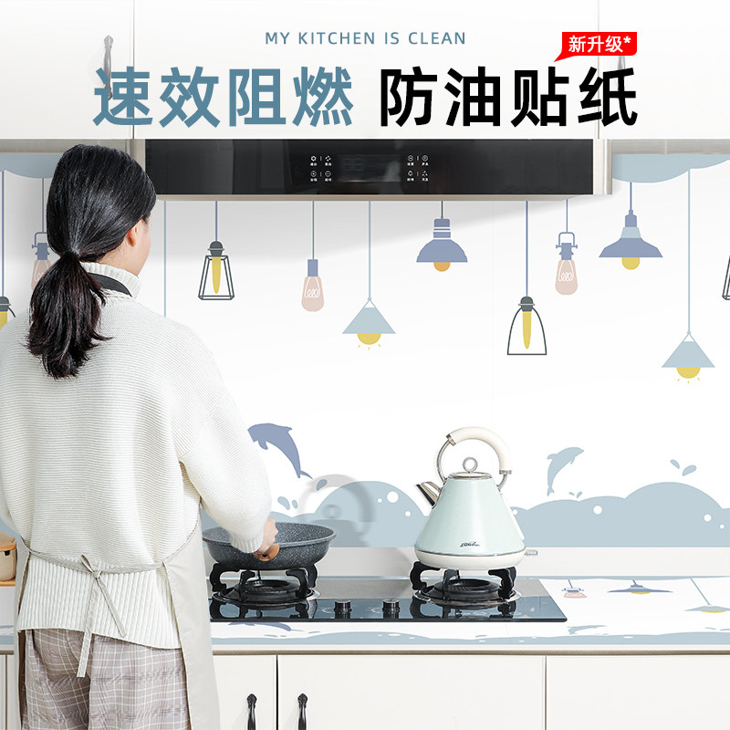 Kitchen oil-proof sticker cabinet countertop waterproof self-adhesive stove stand fire resistant high temperature resistant thickened wallpaper hood wallpaper
