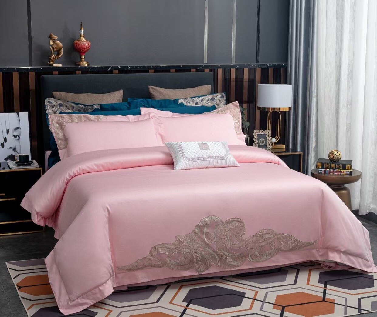 2021 spring and summer new 100 long suede cotton high-end custom-made four sets of style minimalist modern wind wedding bed group