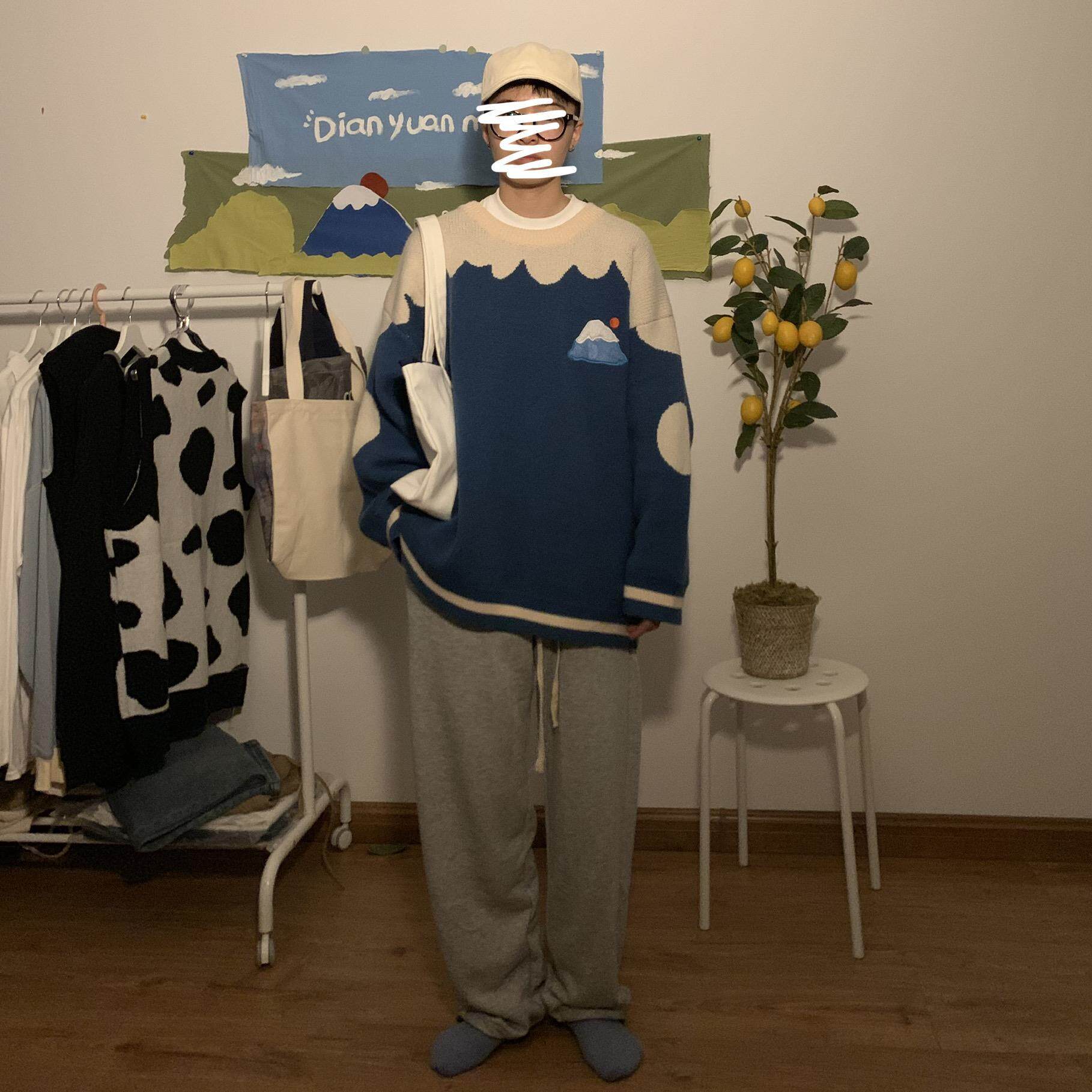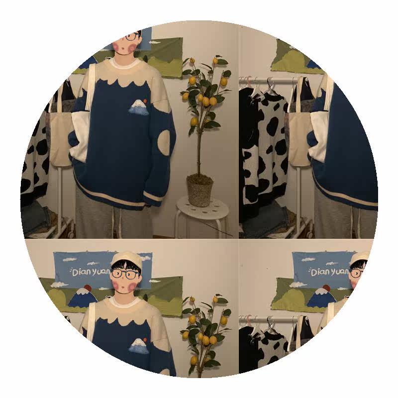 Autumn and winter Coloured retro sweaters men and women loose outside wearing sets Lazy Wind Days Students Needle-weaters Blouses