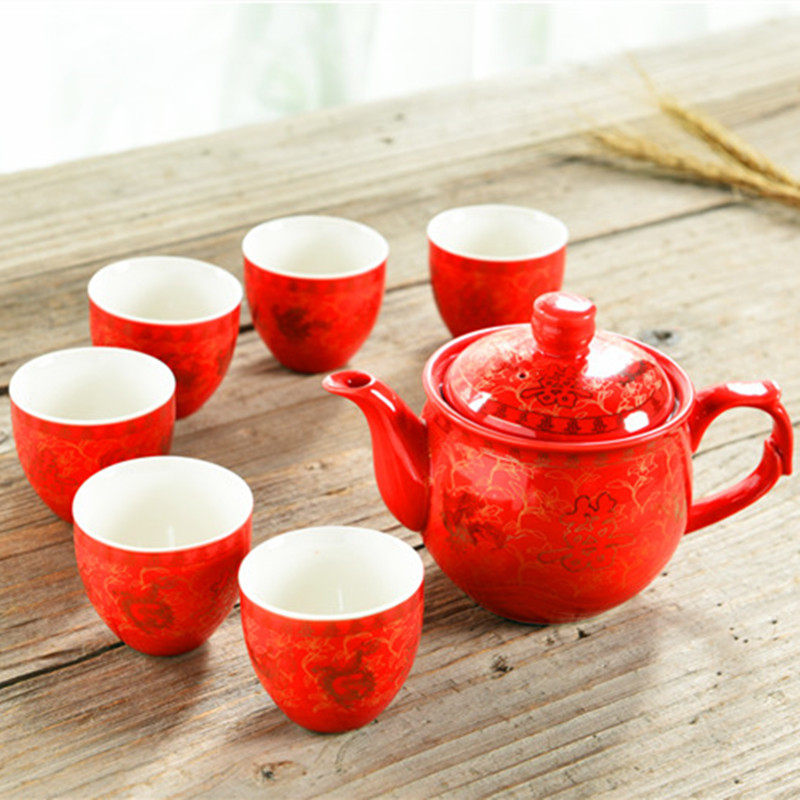 Long mouth pot 350ML red double delight 1 pot 6 cups long mouth pot 350ML red mascot 1 pot 6 cups long mouth pot 350ML yellow leaf 1 pot 6 cups long mouth pot 350ML white leaves 1 pot 6 cups