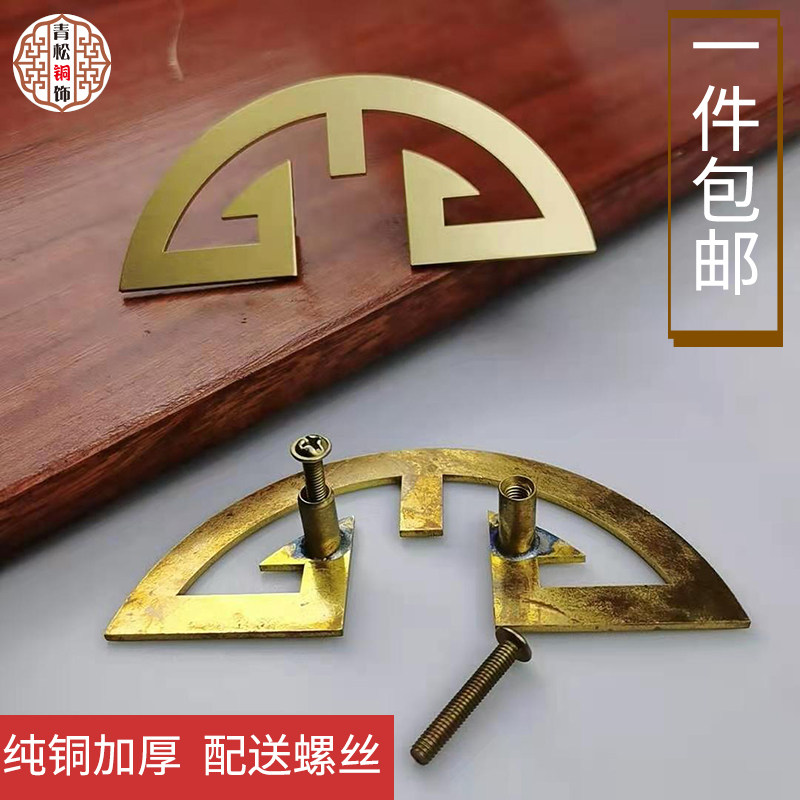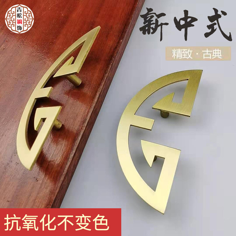 New Chinese solid wood furniture hardware copper accessories cabinet door pure copper handle wardrobe cabinet brass round hollow handle